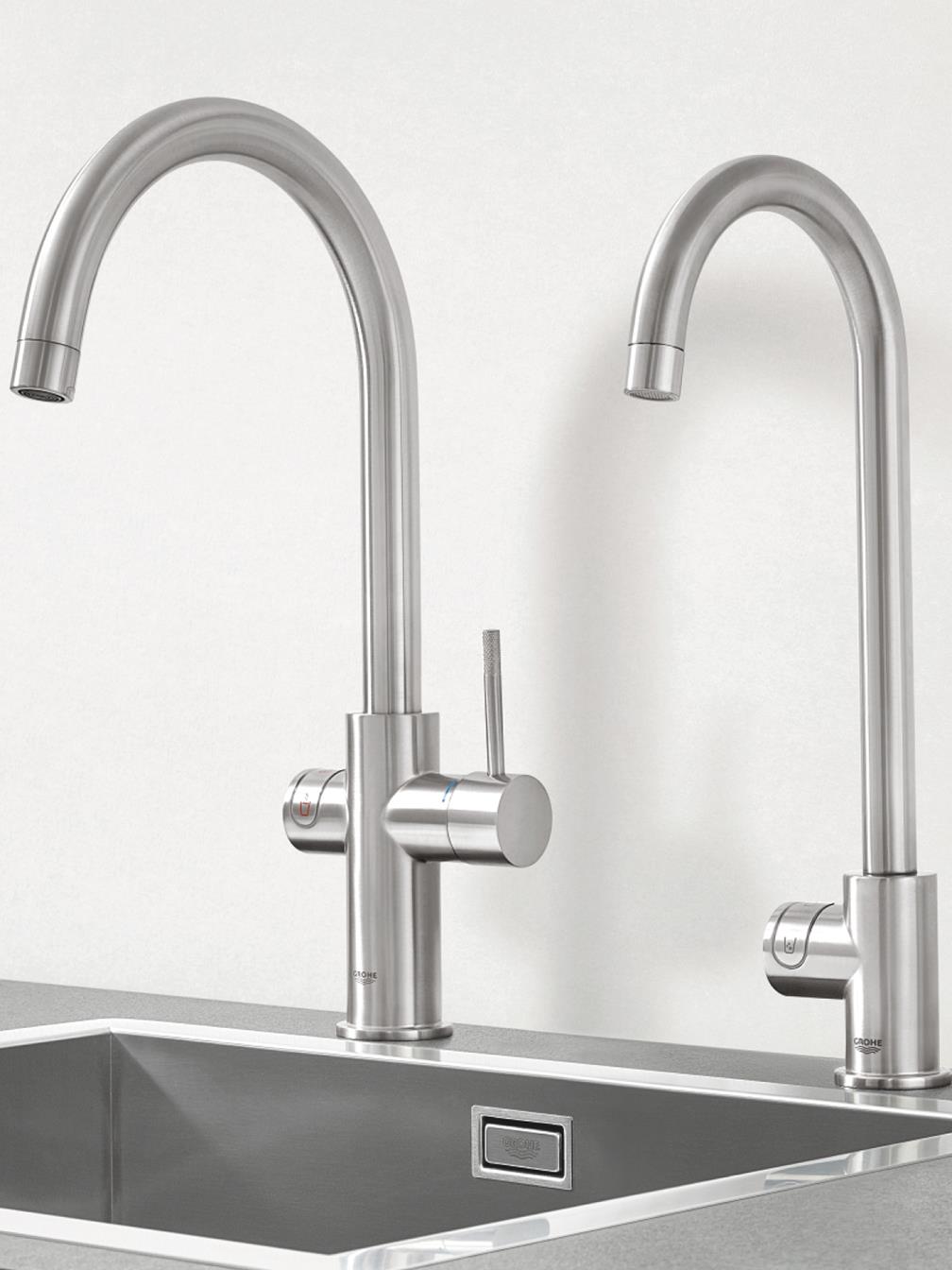 Es kombiniert den modernen Look einer Design-Armatur mit einem Hochleistungsfilter und einem Kühler/ Karbonisierer – kann aber auch als normale Küchenarmatur verwendet werden.