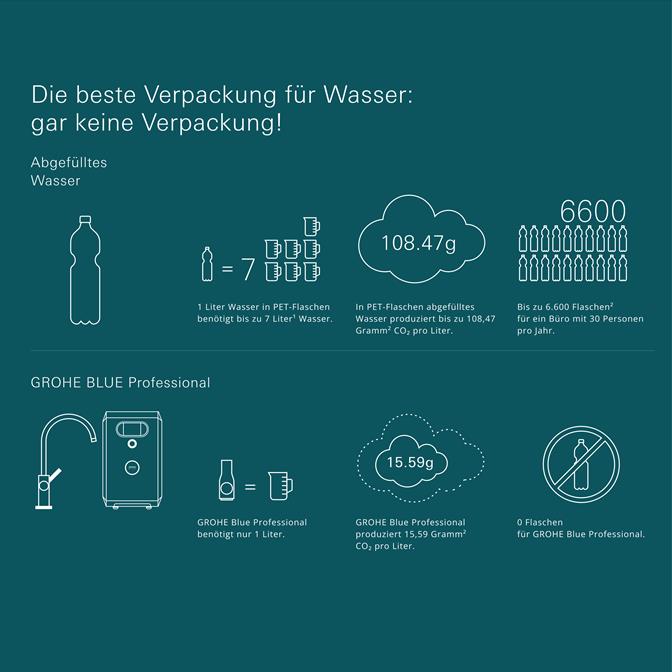 GROHE Blue Home ist die Lösung für den Privatbereich und die nicht-kommerzielle Nutzung. Die GROHE Blue Professional ist die Lösung für den Firmenbereich, kann aber auch im Privatbereich eingesetzt werden. Der Unterschied liegt in der Kapazität des Kühlers. Der GROHE Blue Professional Kühler ist auf 12 Liter gekühltes und sprudelndes Wasser pro Stunde ausgelegt - genug für eine große Gruppe von bis zu 40 Personen. -