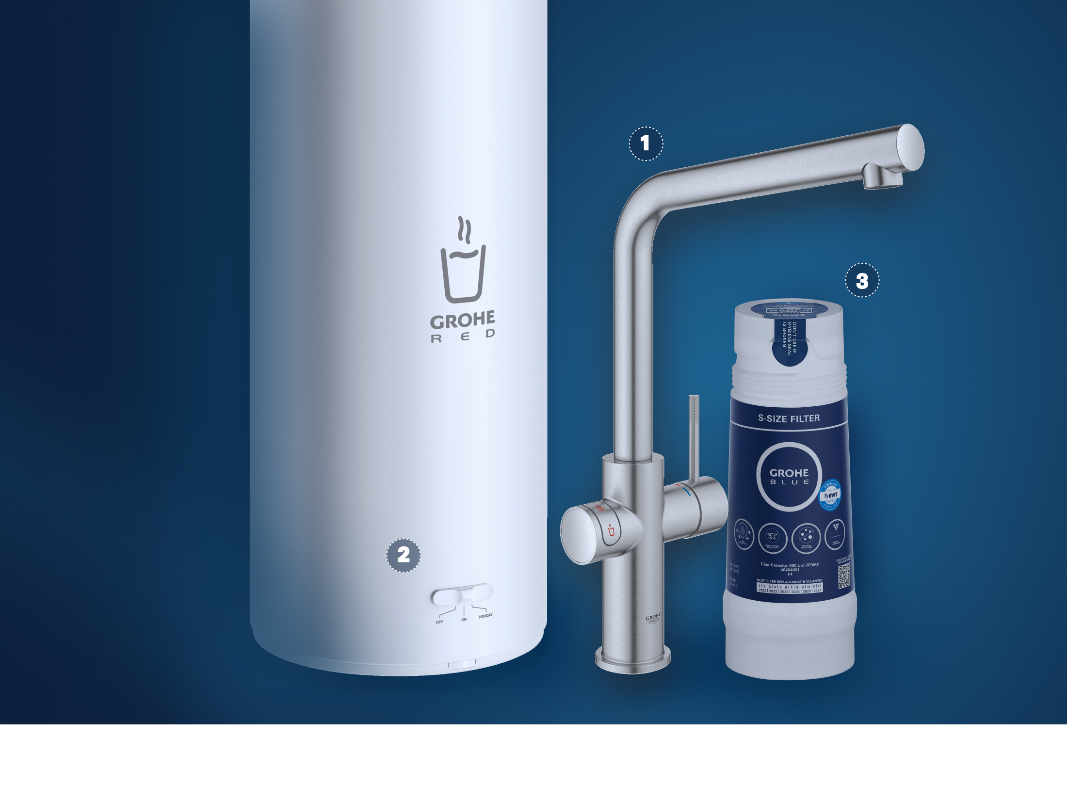 Mit einer GROHE Red Duo Heißwasser-Armatur können Sie Ihre vorhandene Küchenarmatur ersetzen, oder mit der GROHE Red Mono Variante die bereits vorhandene Küchenarmatur oder ein GROHE Blue Trinkwassersystem ideal ergänzen.