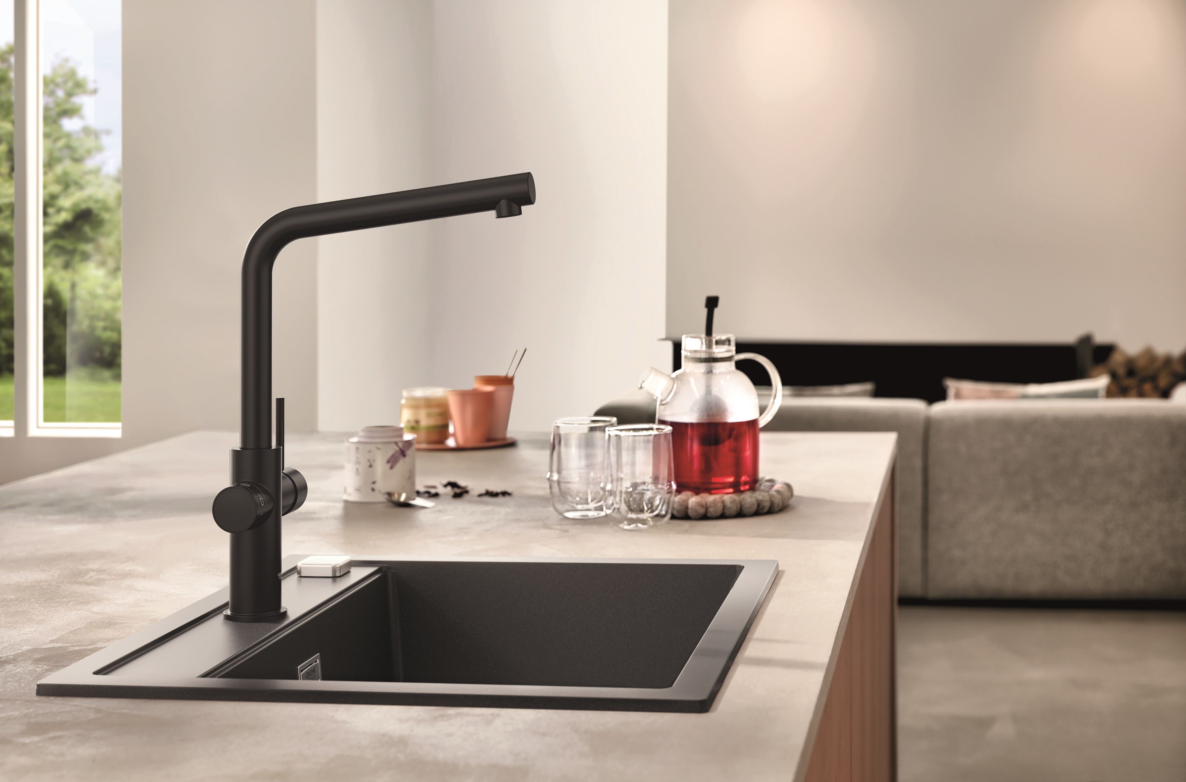 Damit Ihre Armatur mit dem Rest Ihrer Küche harmoniert, können Sie zwischen zwei Ausläufen (C- und L-Form) sowie fünf Farben wählen: chrom, supersteel, hard graphite gebürstet, warm sunset gebürstet und velvet black.