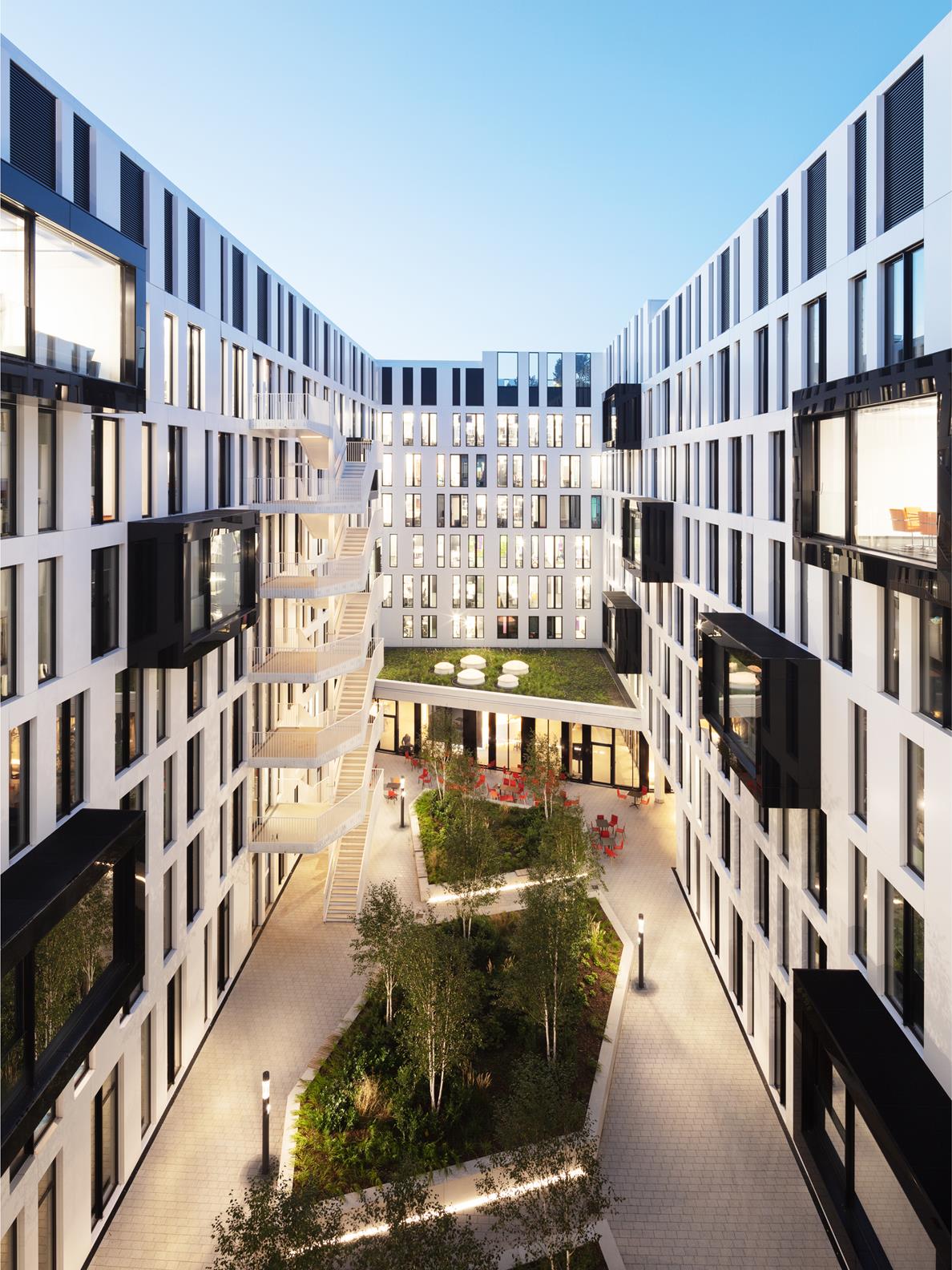 Das Medienhaus ist als ein Spiel von Volumen und Räumen für unterschiedliche Bürotypologien konzipiert. Sechs Vollgeschosse, ein Staffelgeschoss und zwei Untergeschosse bieten Möglichkeiten für offene Flächen, Einzel-, Zweier- und Gruppenräume sowie kombinierte Lösungen. "Unsere Intention war es, auch die Außenräume einzubeziehen", so Caspar Schmitz-Morkramer weiter. Dabei zielt er unter anderem auf den über 600 Quadratmeter großen "Skygarden" ab, der für alle Mitarbeiter und für Veranstaltungen gedacht ist. Das Atrium und die "Town Hall" für Veranstaltungen markieren weitere öffentlich zugängliche Bereiche des Gebäudes. Nicht nur die Inhalte werden immer "sozialer", auch die Redaktionen und Verlage selbst öffnen sich durch entsprechende Angebote zunehmend dem öffentlichen Leben. Für moderne Medienhäuser, so Schmitz-Morkramer, geht es daher um Zugänglichkeit und eine positive Selbstverständlichkeit auf hohem Niveau. Eine klare Formensprache ist dafür entscheidend: "Ein simples Rechteck ist ein Grundriss, den jeder versteht: Es gibt zwei lange und zwei kurze Seiten, in den Innenecken befinden sich die Treppenhäuser." Diese Einfachheit gebe „La Tête“ die nötige Freiheit, um gestalterisch auf neue digitale Formate zu reagieren. Maßgeblich war für die Architekten außerdem eine „multi-tenant-fähige“ Gebäudestruktur, sodass „La Tête“ neben seinem Hauptmieter inzwischen auch weitere Kreativunternehmen wie die Agentur Havas beherbergt.