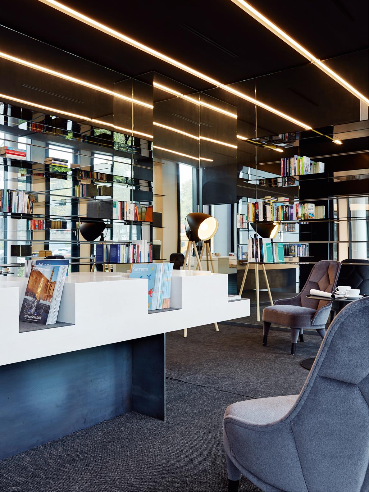 In der Zentrale der Handelsblatt Media Group kommen unter anderem durch die Innenarchitektur fünf Markenwerte zum Ausdruck: Exzellenz, Unabhängigkeit, Kraft, Klarheit und Innovation.