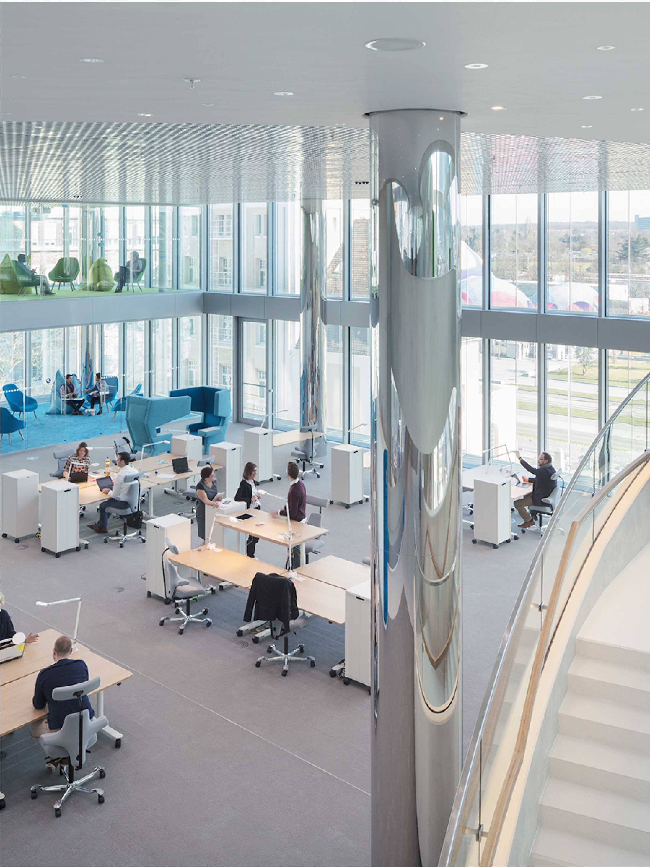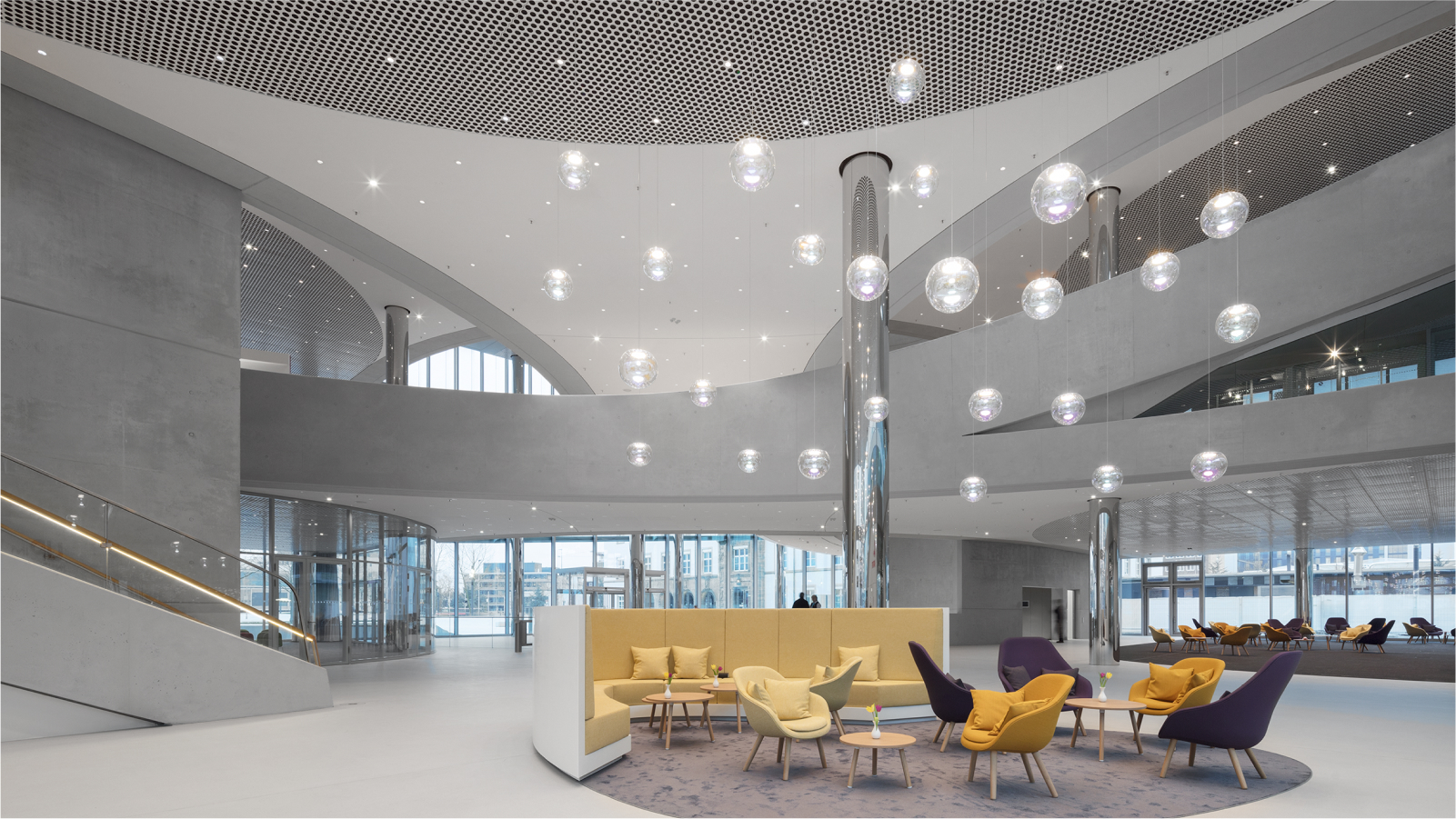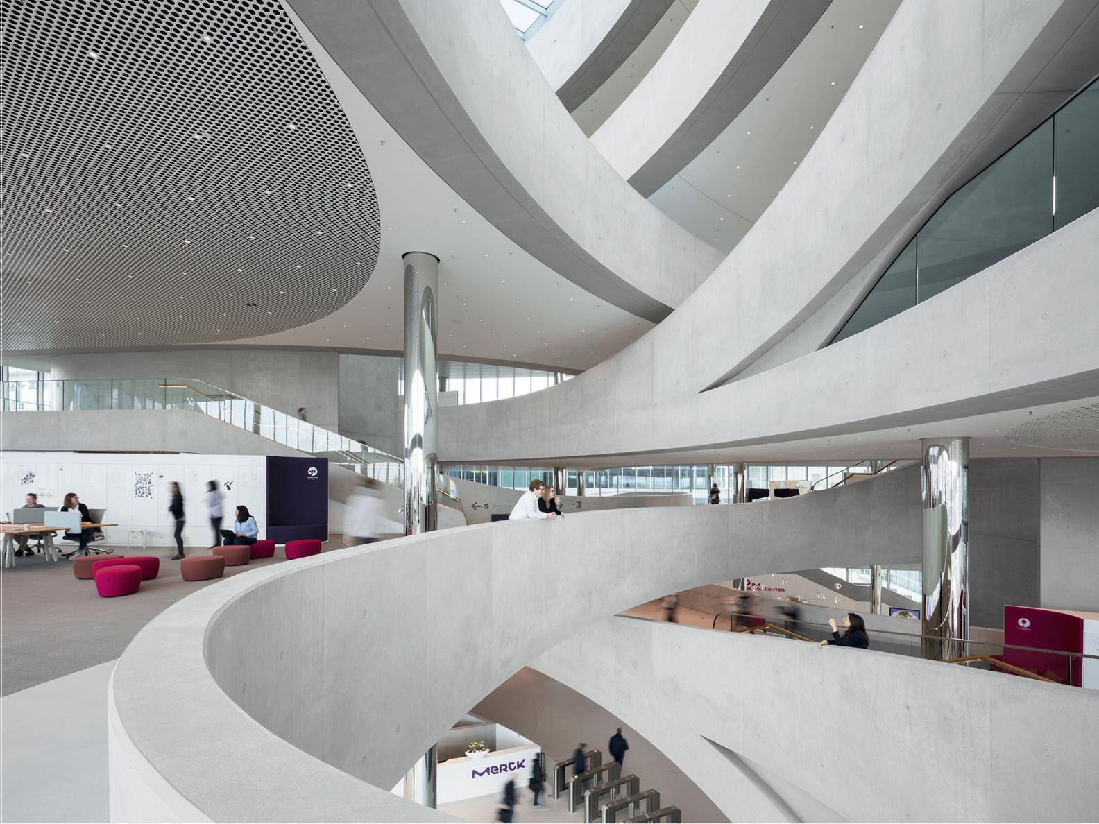 Die neue Unternehmenszentrale des Chemie- und Pharmakonzerns Merck bringt Mitarbeiter mit Unternehmen aus aller Welt zusammen. Zugleich ist sie ein Paradebeispiel für experimentell gestaltete Büroarchitektur, die kreative Prozesse unterstützt und neues Geschäft fördert.